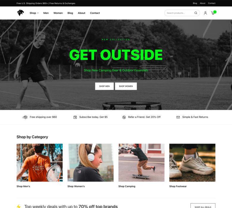 Speed-tested and approved, Wild Sports is your go-to theme for sports-and-recreation style WooCommerce stores. It has built-in support for all default WooCommerce features.